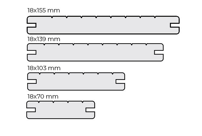 De clip is asymmetrisch en past in een groef van slechts 4 mm dik. 3 tandjes zorgen ervoor dat de planken strak tegen de achterconstructie worden geklemd. De andere kant van de clip is glad. Hierdoor kan het volgende deel eenvoudig en snel worden gemonteerd.