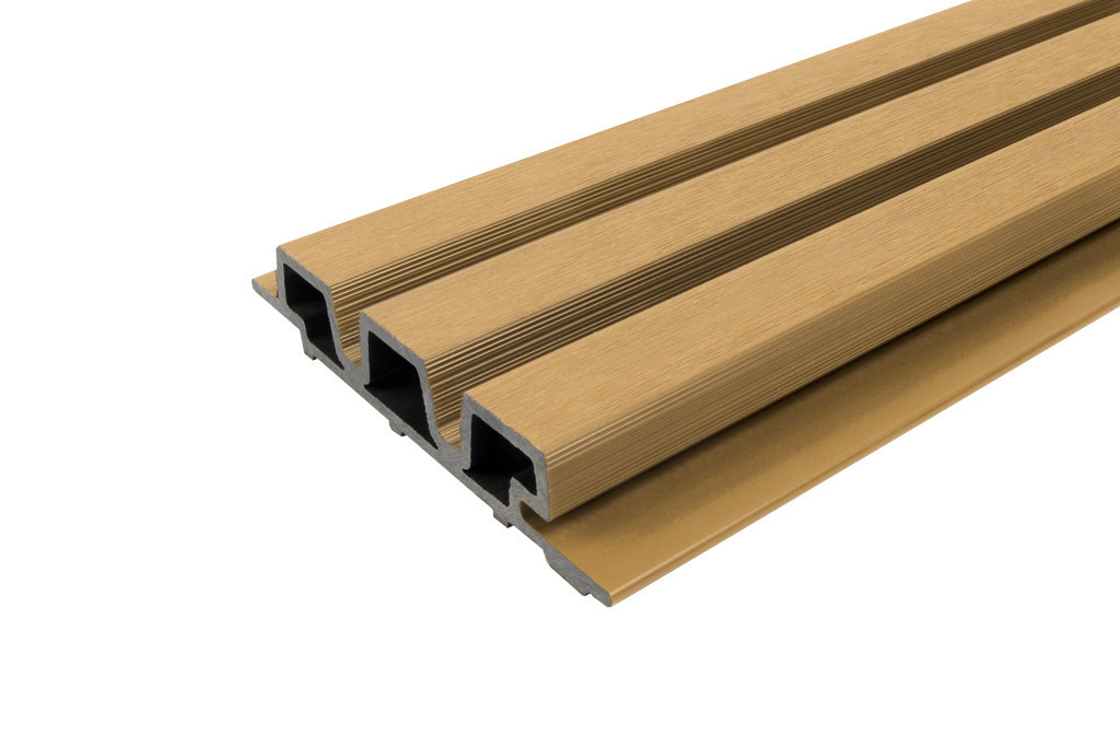 WEO35 co-extrusie houtcomposiet is door de unieke trapzium vorm zowel horizontaal als verticaal te plaatsen. Nagenoeg onzichtbare montage met RvS schroeven in kleur. Matte multicolor kleuren met geborsteld oppervlak zorgen voor een natuurgetrouwe en warme uitstralingen het triple rhombus stijl profiel geeft de wand structuur en een luxe look-and-feel. Leverbaar in 4 kleuren met 20 jaar kleur-garantie. Voor correct gebruik verwijzen wij naar de montagebeschrijving.