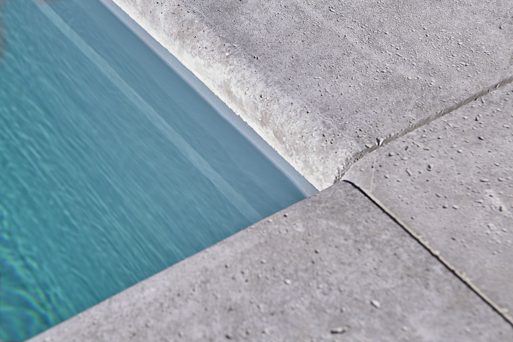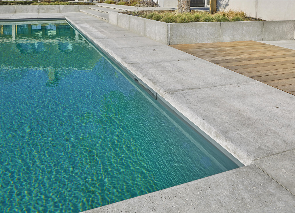 Artistone beschikt over een zwembadrand en een bijpassend hoekstuk, die beide aan één zijde afgerond zijn.