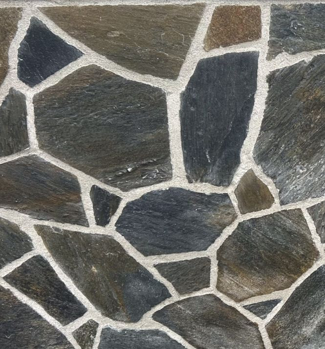 Kwartsiet Flagstones Black zijn robuuste natuurstenen met een krachtige, donkere uitstraling. De stenen hebben een mix van antraciet, donkergrijs en subtiele aardetinten, wat zorgt voor een stoer en stijlvol geheel.