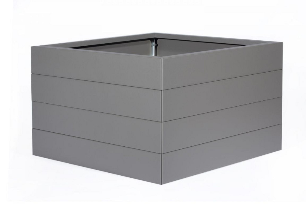 De taupekleurige modulaire plantenbak van gepoedercoat staal straalt rust, zachtheid en verfijning uit. De natuurlijke tint vormt de perfecte balans tussen grijs en bruin en past moeiteloos in elke buitenruimte.