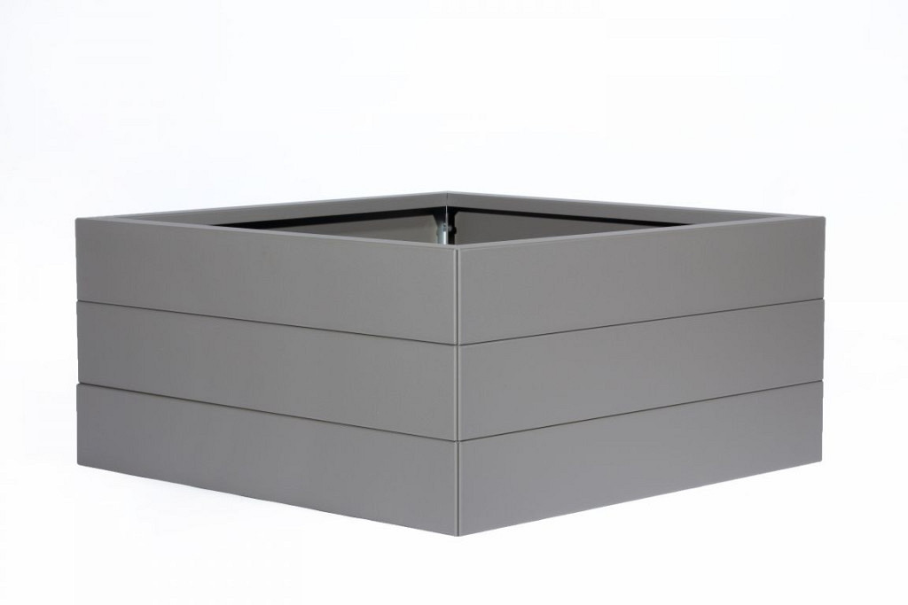 De taupekleurige modulaire plantenbak van gepoedercoat staal straalt rust, zachtheid en verfijning uit. De natuurlijke tint vormt de perfecte balans tussen grijs en bruin en past moeiteloos in elke buitenruimte.