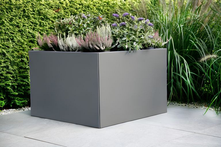 In antraciet komt het moderne karakter van dit ontwerp volledig tot zijn recht. De diepe, matgrijze kleur heeft een luxe uitstraling die rust brengt in de buitenruimte en beplanting laat spreken. Gemaakt van gepoedercoat staal, kleurbestendig, krasvast bij normaal gebruik en bestand tegen alle weersinvloeden, waardoor de bak jarenlang zijn stijlvolle uitstraling behoudt.