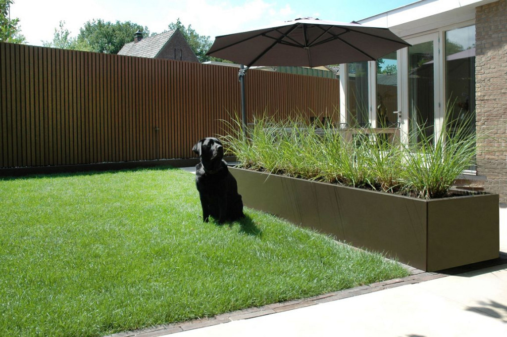 In supra bruin straalt de bak warmte en elegantie uit. De kleur doet denken aan aarde en brons en sluit prachtig aan bij hout, steen en groene beplanting. De matte poedercoating draagt bij aan bescherming tegen krassen bij normaal gebruik en tegen weersinvloeden, zodat de rijke, bruine tint langdurig zijn karakter behoudt.