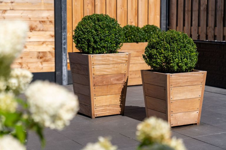 - Hardhouten plantenbakken zijn sterk en slijtvast.