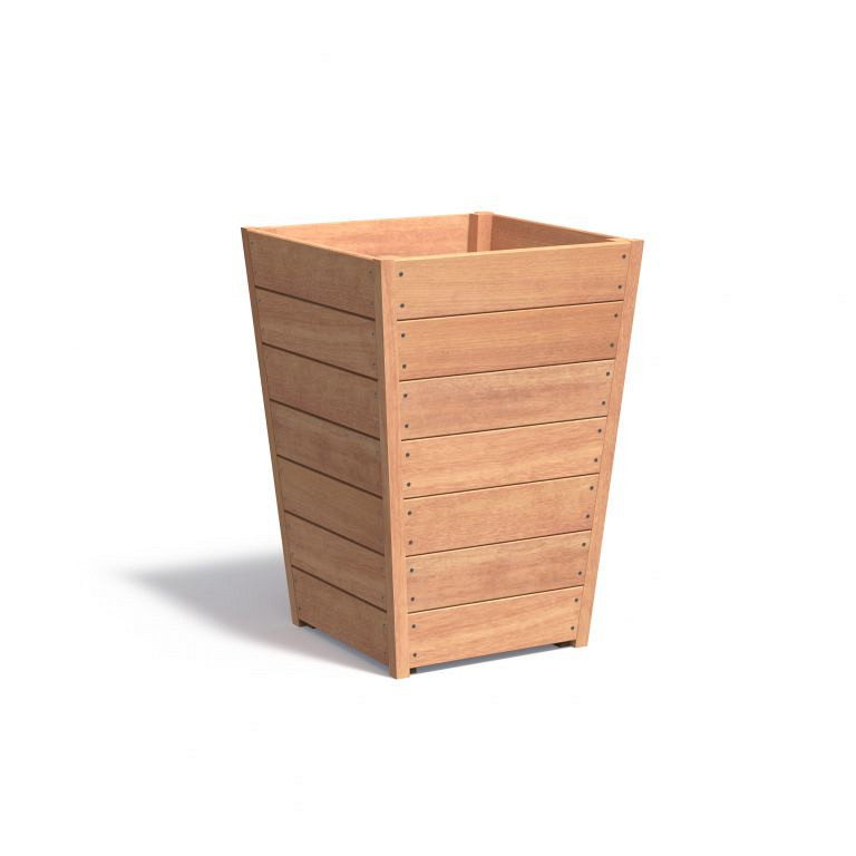 De vierkant tapse vorm van de TAP zorgt voor een chique uitstraling. Dit houten exemplaar sluit uitstekend aan op projecten met vierkante plantenbakken.
