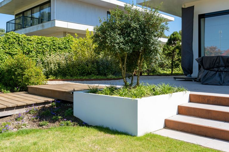 Deze plantenbak met rechte hoeken hoort thuis in tuinen met strakke lijnen. De strakke dubbel gezette randafwerking geeft het geheel meer body. Ook als afscheiding in horecagelegenheden is de CARREZ uiterst bruikbaar.