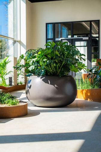Polyester is sterk en bestaat uit glasvezel en hars, wat zorgt voor extra stevigheid en een langere levensduur. Het biedt ontwerpers veel vormvrijheid, waardoor organische en vloeiende lijnen mogelijk zijn, wat het perfect maakt voor plantenbakken.