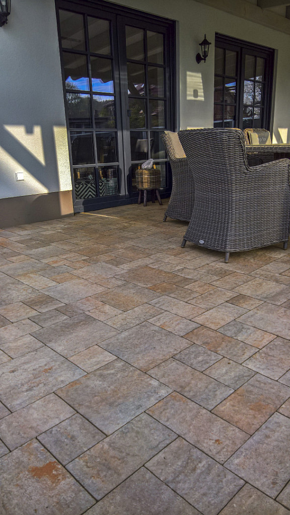 De Camelot Paving is een strak wildverband 6 cm in de afmetingen 15x15, 15x22,5, 30x15 en 30x30cm, door en door gekleurd met een fijn structuur gewelfde deklaag zonder facet, met afstandhouder. Het ontbreken van een facet, zorgt dat u met deze tegels een hele strakke bestrating kunt maken die goed past in de moderne tuin.