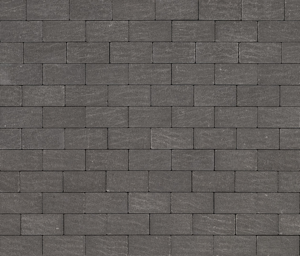 De stenen zijn voorzien van een kleurechte natuursteen granulaat deklaag en worden geproduceerd met authentiek natuursteen, wat zorgt voor een natuurlijke uitstraling en een hoge kleurvastheid. Dankzij het ontbreken van een facet en de geïntegreerde afstandhouders ontstaat een rustig en stijlvol bestratingsbeeld.