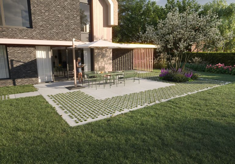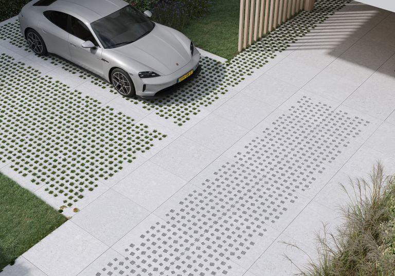 Met de openingen in de tegels creëer je eenvoudig een groene leefomgeving door ze te vullen met gras, kruiden, grind of split. Zo maak je je tuin, pad, oprit of parkeerplaats niet alleen mooier, maar ook duurzamer. Regenwater zakt direct weg in de bodem, hittestress wordt verminderd en je draagt bij aan een koelere, groenere toekomst.