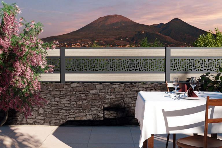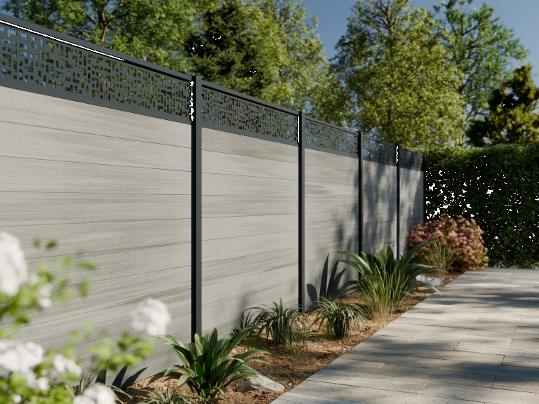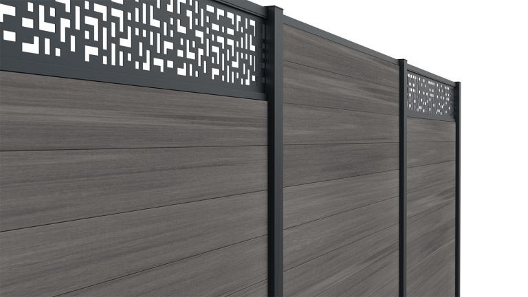 Houdt u van geometrische vormen? Kies dan voor onze CRIOS verticale en horizontale decoratieve elementen. De decoratieve elementen worden geleverd met een aluminium frame dat gemonteerd wordt op de aluminium - óf WPC fence boards, tussen de palen. De horizontale decoratieve elementen worden boven op het scherm geplaatst of tussen twee fenceboards. Crios horizontaal vervangt precies twee fence boards van 21x160 mm.