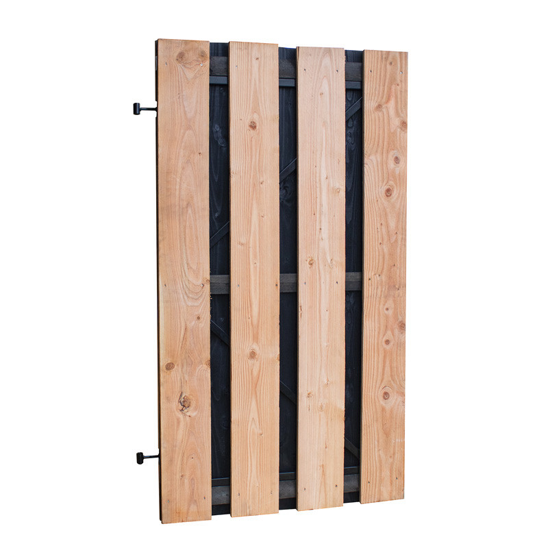 Deze Douglas plankendeur wordt geleverd zonder hang- en sluitwerk. Vergeet dan ook niet zelf deze materialen, zoals een plaatduim, te bestellen. Voor een stevige constructie bestel je een poortdeur kozijn.