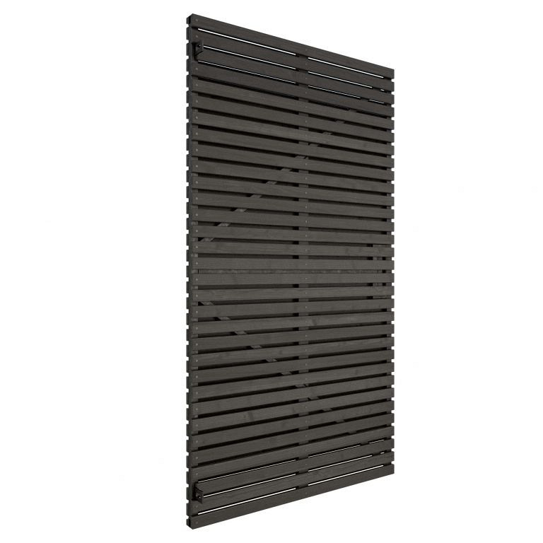 De lattendeur is gemaakt van grenen hout. Grenen is een naaldhoutsoort die van nature zachter en vetter is dan vuren. Deze harsrijke soort is één van de meest gebruikte houtsoorten in Europa. Om de levensduur te verlengen wordt deze houtsoort vacuümdruk geïmpregneerd met Tanalith E. Deze methode zorgt ervoor dat de levensduur verlengd wordt tot 10-15 jaar en dat het hout resistent wordt tegen (oppervlakte) schimmels. Na montage van de latten op het zwarte deurframe wordt de gehele deur zwart gespoten.