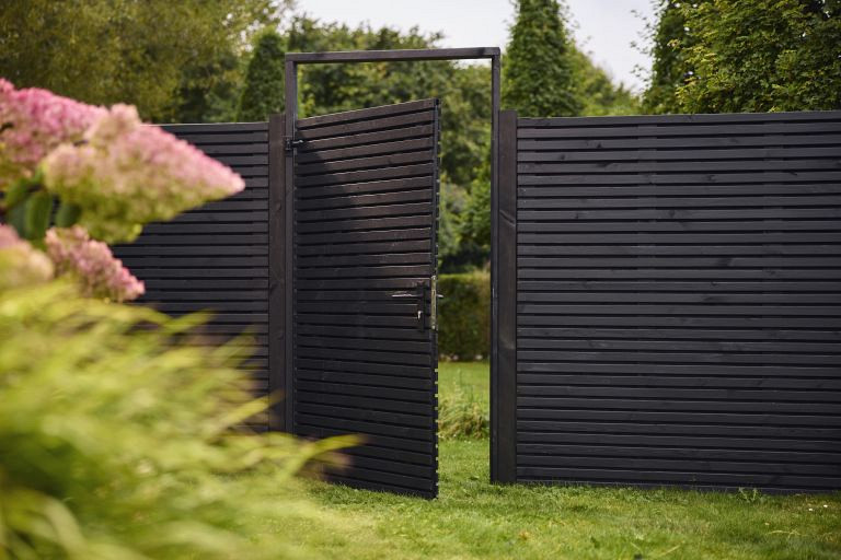 Geef je tuin een moderne en stijlvolle uitstraling met dit Grenen geschaafd latten scherm. De strak geschaafde latten zijn recht geplaatst (horizontaal of verticaal te monteren) en zwart gespoten voor een luxe en tijdloze look.