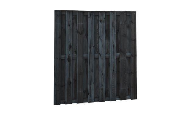 Naaldhout geschaafd plankenscherm 18-planks 15mm 180x180cm geïmpregneerd en zwart gedompeld