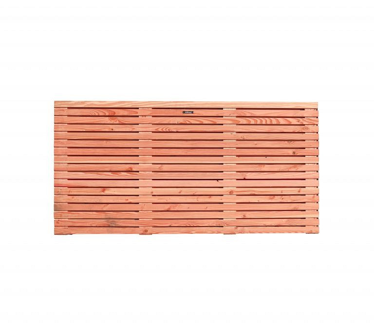Het douglas Elan tuinscherm heeft een verfijnde vormgeving met aan 2 zijden geschaafde latten met ca. 1 cm tussenruimte. De douglas latten zijn 1,3x4,2 cm en geplaatst op tussenlatten van 1,6x9,5 cm. De bovenzijde is afgewerkt met een geïntegreerde afdeklat. Het scherm is horizontaal toepasbaar. Het scherm is gemakkelijk te plaatsen tussen de metalen H-Gleufpaal met behulp van de onze bevestigingssets. De handleiding voor het plaatsen van deze schermen in Hout-metaalsysteem 1 staat op de dealerportal bij services.