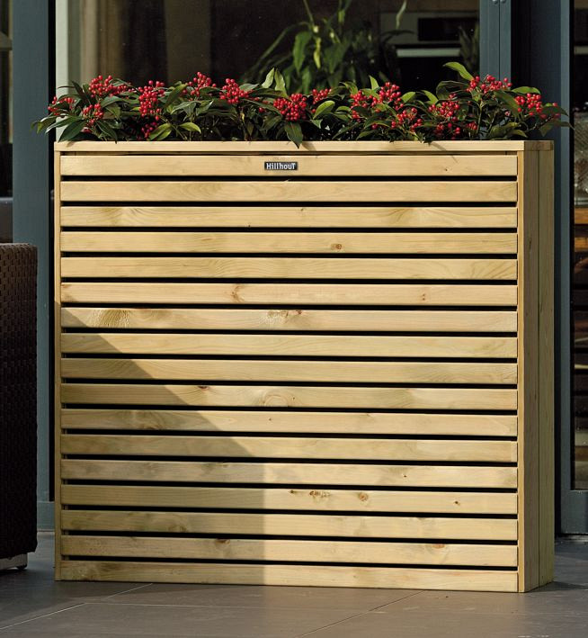 De Elan Terrasbloembak Excellent heeft een verfijnde vormgeving met balkjes met ca. 1 cm tussenruimte. Vuren balkjes 2x4,4 cm. Inclusief zwart anti-uitspoeldoek.