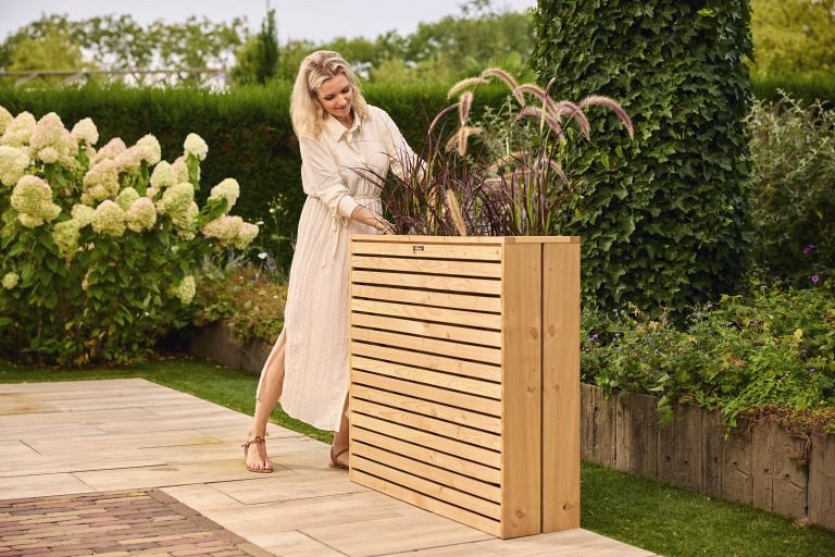 De Elan Terrasbloembak Excellent heeft een verfijnde vormgeving met balkjes met ca. 1 cm tussenruimte. Vuren balkjes 2x4,4 cm. Inclusief zwart anti-uitspoeldoek.
