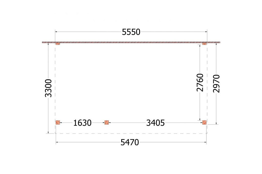 Aanbouwveranda Ancona 5550x3300x2600mm (bxdxh) links