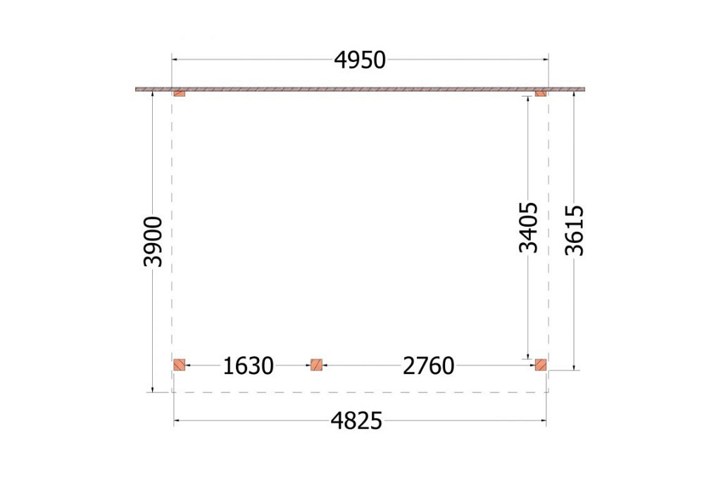 Aanbouwveranda Ancona 4950x3900x2600mm (bxdxh) links