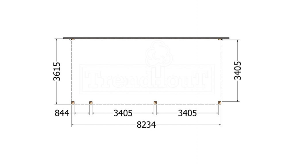 Aanbouwveranda Modena 8250x3650x2700mm (bxdxh) links