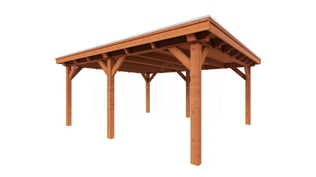 Het Trendhout Toscane Buitenverblijf is een elegant en ruim buitenverblijf met een plat dak, ontworpen voor wie op zoek is naar een combinatie van stijl en functionaliteit. Dit buitenverblijf kenmerkt zich door een overstekend dak rondom, afgewerkt met halfronde sierklossen die een warme, landelijke uitstraling geven. Dankzij hogere ringbalken en gordingen biedt Toscane een indrukwekkende diepte van 5 meter, ideaal voor grotere buitenruimtes. De constructie, vergelijkbaar met het Siena-model, is snel en eenvoudig te monteren door slimme details zoals zwaluwstaartverbindingen, positioneringspennen, voorgeboorde schroefgaten en op lengte afgekorte onderdelen. Het Toscane buitenverblijf is beschikbaar in één diepte en meerdere breedtes, passend bij uw tuinwensen.