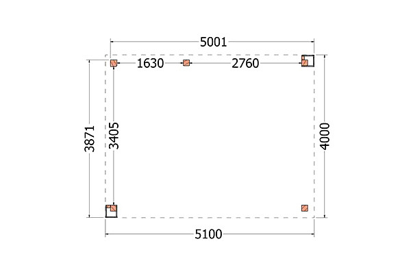 Buitenverblijf Verona model links 5100x4000x2500mm (bxdxh)
