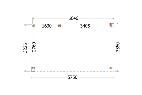 Buitenverblijf Verona model links 5750x3350x2500mm (bxdxh)