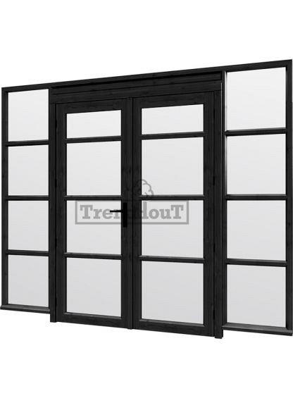 Steel Look raam 2760x2200mm zwart module C-04 met dubbele openslaande deuren