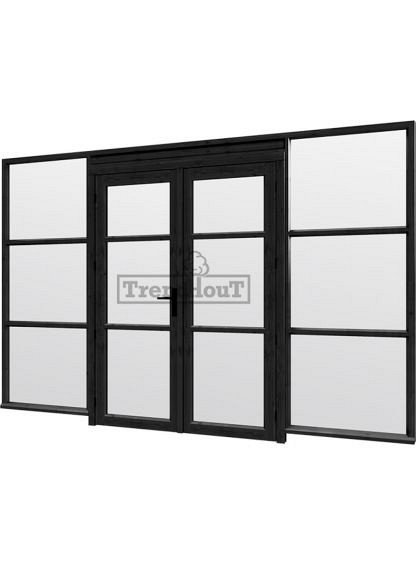 Steel Look raam 3405x2200mm zwart module E-03 met dubbele openslaande deuren