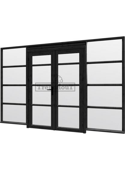 Steel Look raam 3405x2200mm zwart module E-04 met dubbele openslaande deuren